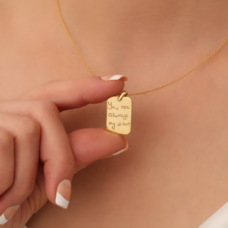 💎 Custom Handwriting Necklace Your Own Handwriting Memorial Gold Engraved Necklace Signature Jewelry Couple Necklace Valentines