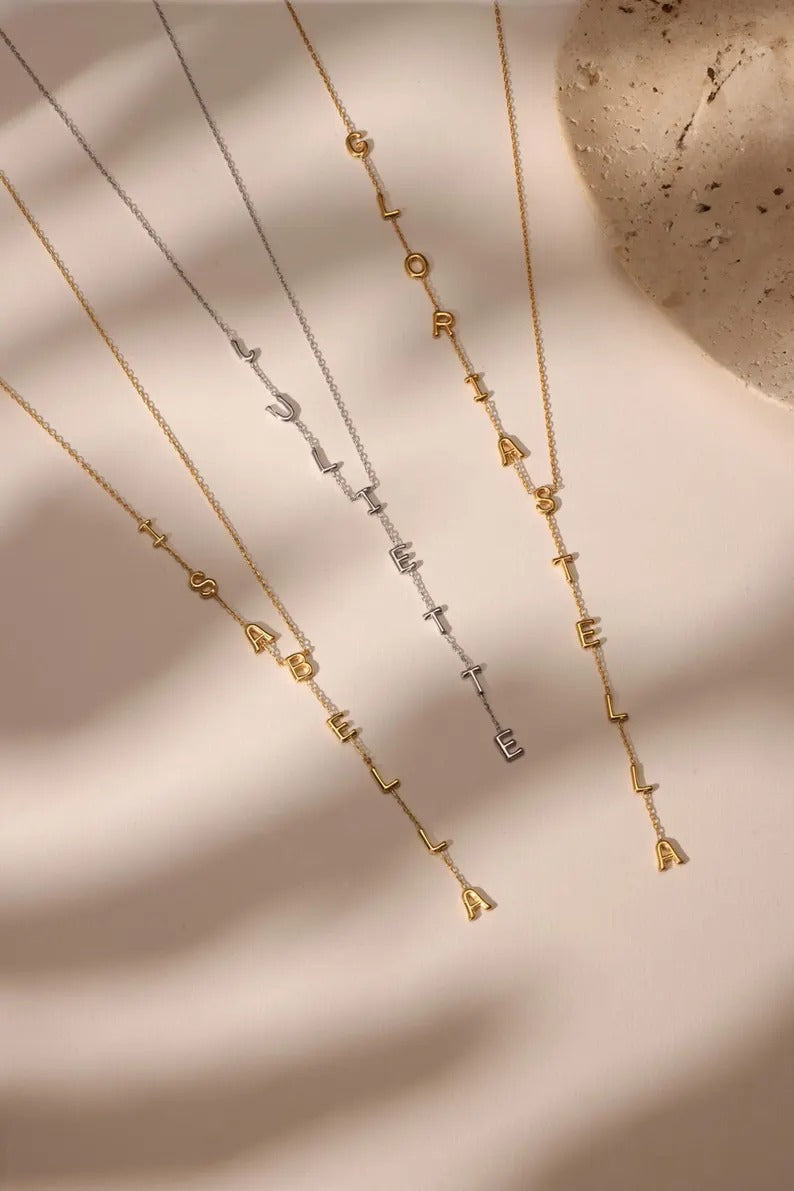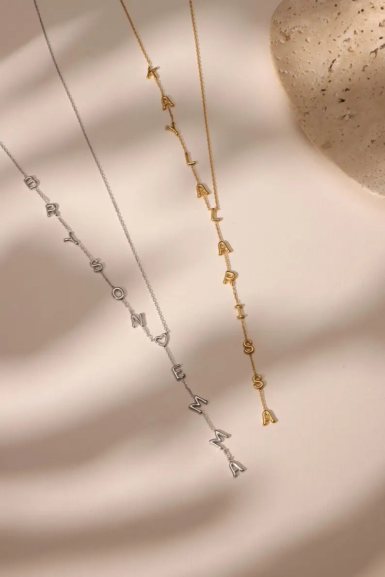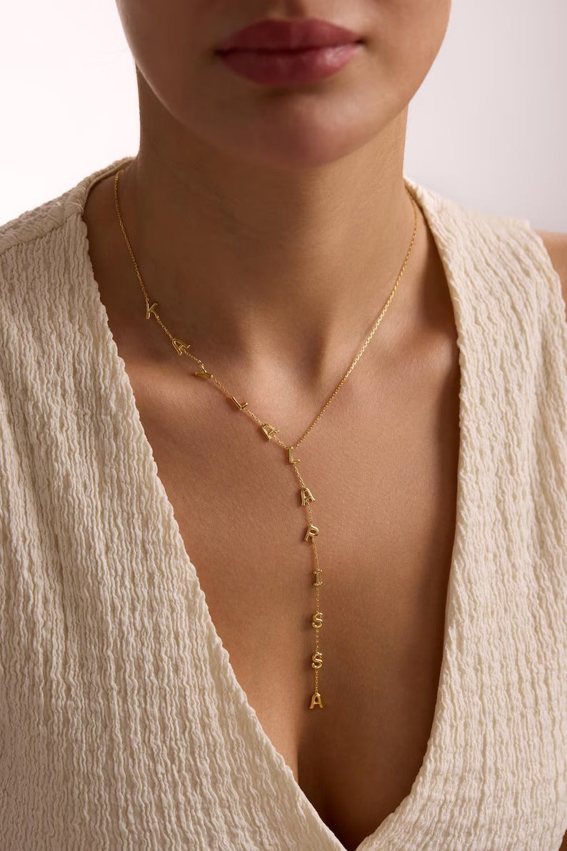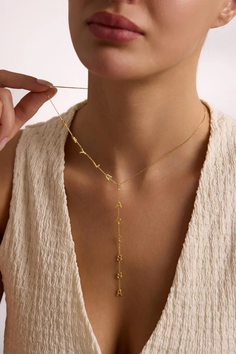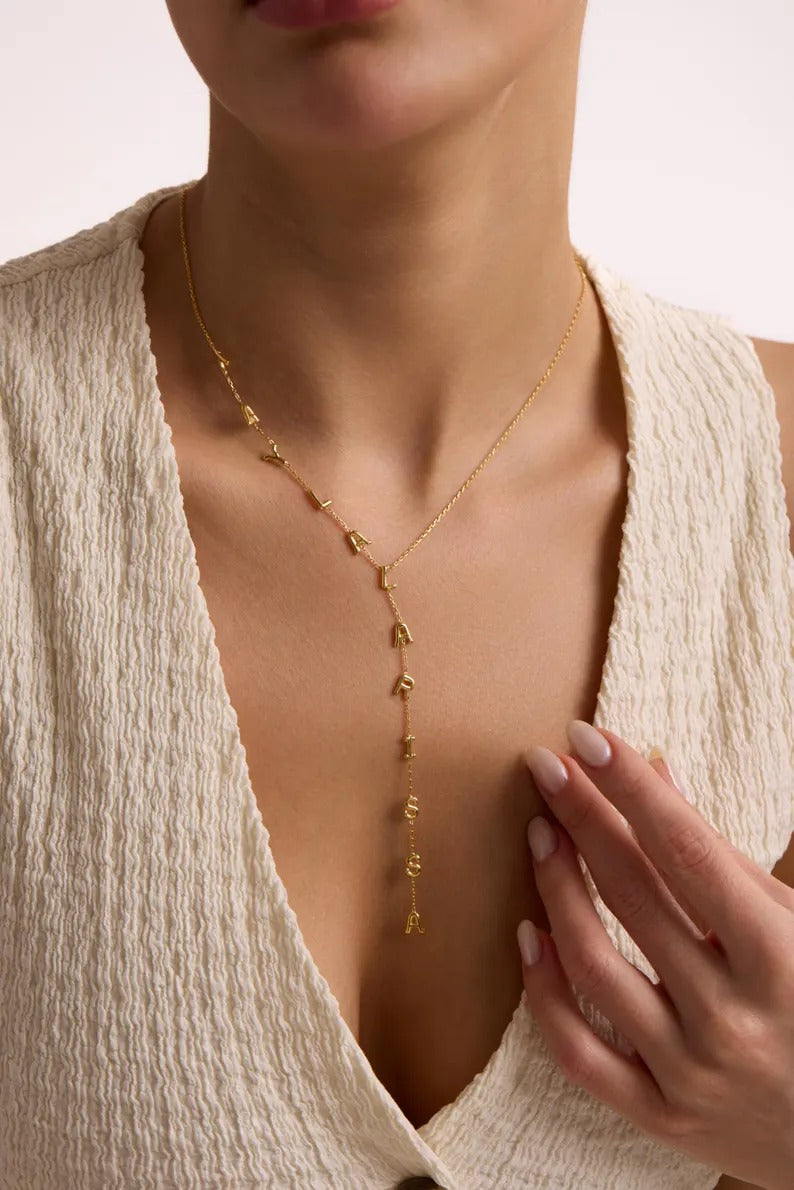 Custom Lariat Name Necklace | Personalized Y Necklace | Dainty Drop Name Jewelry