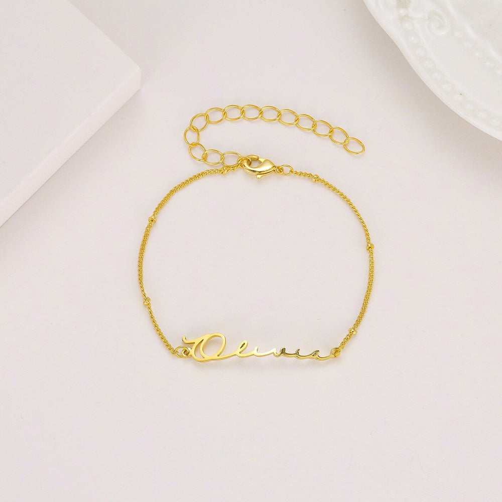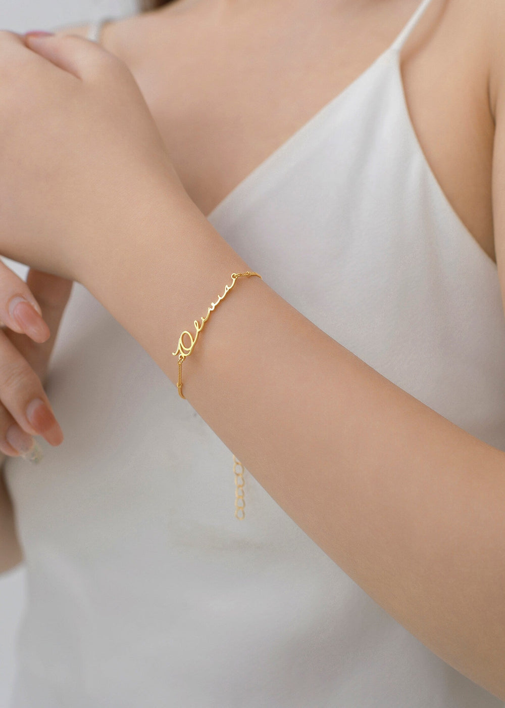 Elevate your style with our Minimalist Custom Name Bracelet in Gold/Silver/Rose Gold. Personalized for couples, BFFs, or to make a statement, this chain bracelet adds a customized touch. With a sleek design and your choice of metal, it's the perfect accessory to show off your unique bond.