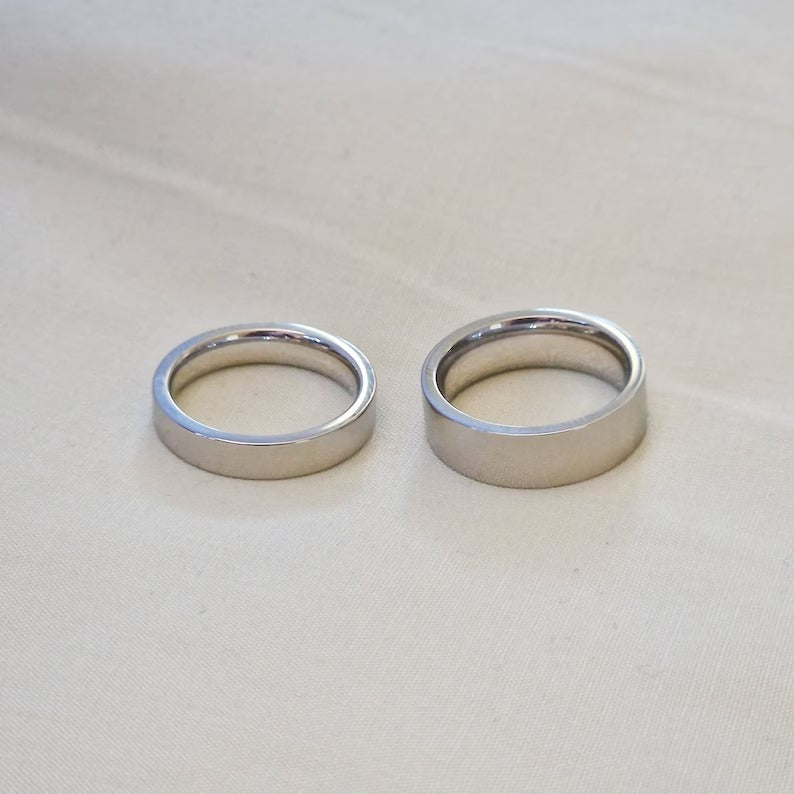 Our rings have a width of 4mm or 6mm depending on your preference and the sizing chart can be found in the images.