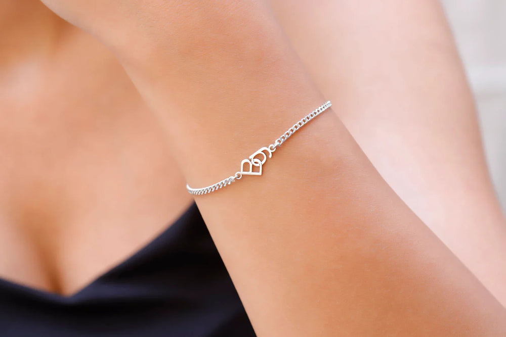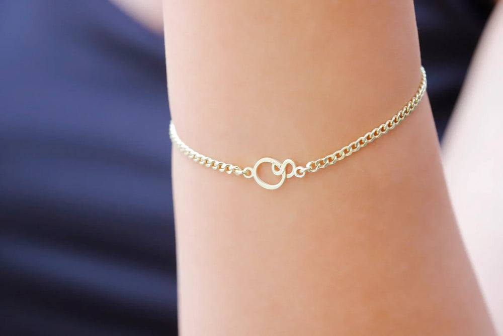 This Personalized Tiny Interlocking Two Initials Bracelet is perfect for those who love dainty and customized jewelry. Made with a beautiful gold letter design and a custom curb chain, this bracelet can be personalized with two initials to make it truly unique. A perfect gift for any occasion.